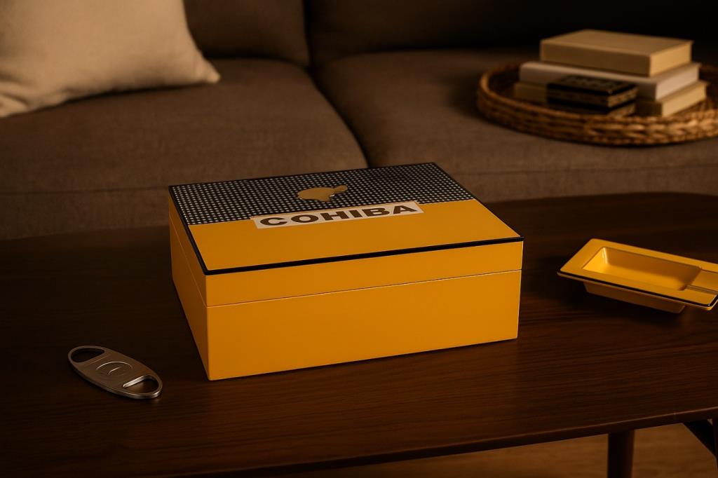 Dış Tasarım: Sarı ve siyah renk kombinasyonunda, ikonik Cohiba logosu ile parlak lake yüzey